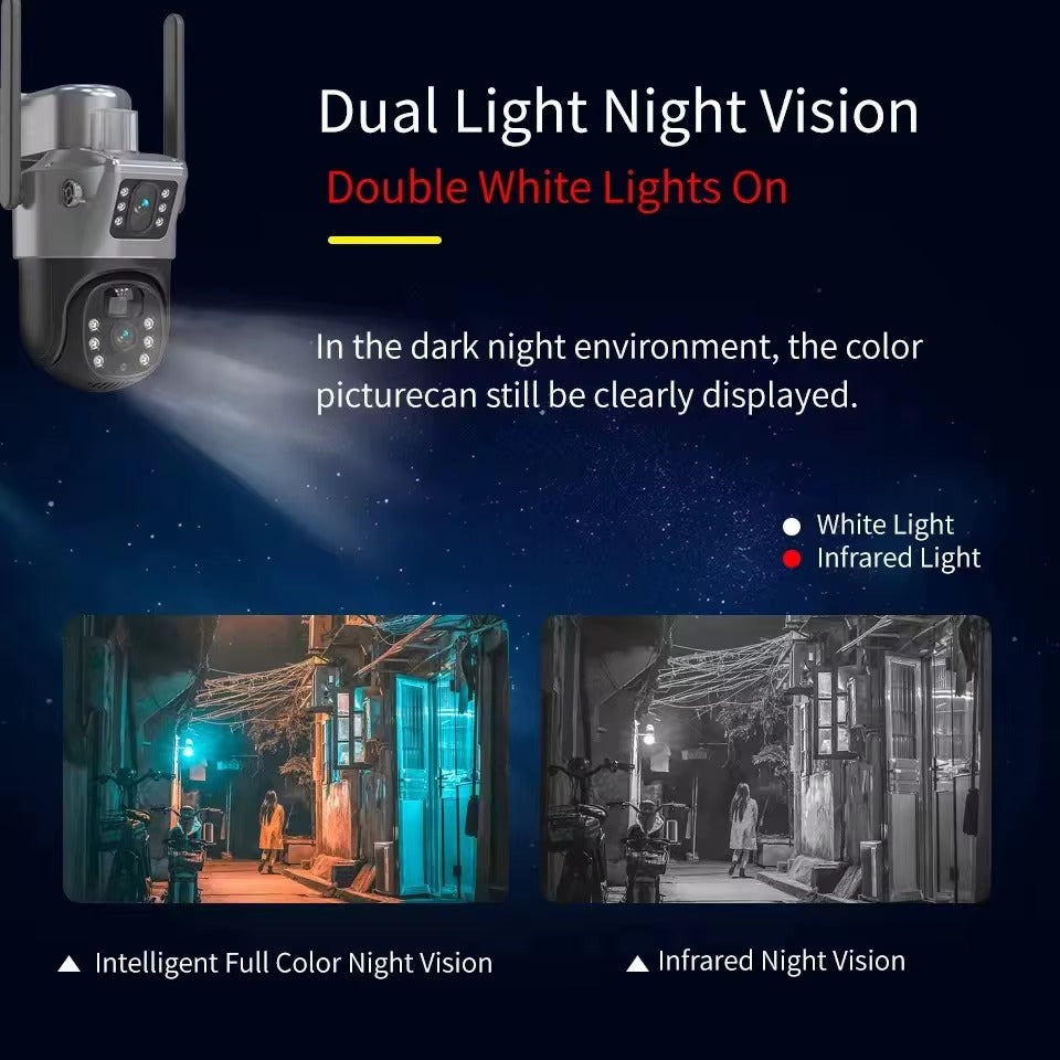 GrĂące Ă sa tĂȘte motorisĂ©e (rotation 360°), vous pouvez contrĂŽler la camĂ©ra Ă distance depuis votre tĂ©lĂ©phone et voir chaque angle de votre propriĂ©tĂ© en temps rĂ©el. Elle dispose dâune vision nocturne infrarouge et en couleur, assurant des images claires mĂȘme dans lâobscuritĂ© totale.