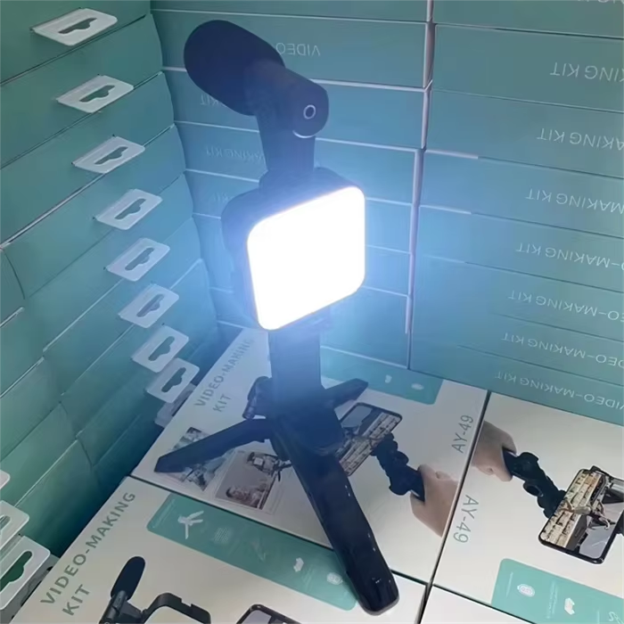 Le Kit de Création Vidéo Y-49 est parfait pour filmer avec votre smartphone en toute simplicité. Il comprend un microphone externe pour un son clair et une lampe LED intégrée pour un éclairage net, même la nuit. Léger et facile à tenir, il est idéal pour TikTok, Facebook, YouTube, lives et interviews. Compatible avec Android et iPhone, il supporte une charge jusqu’à 4 kg pour une utilisation stable et sécurisée.