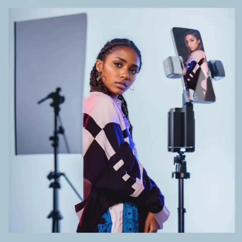 Ce support téléphone intelligent avec suivi automatique est idéal pour les vidéos, lives, appels vidéo et créations de contenu. Grâce à sa rotation 360° avec reconnaissance faciale, il suit automatiquement vos mouvements sans télécommande. Équipé de deux lampes LED intégrées, il offre un éclairage optimal pour des images claires et professionnelles. Rechargeable via port Type-C, il est compact, stable et parfait pour une utilisation à la maison ou en déplacement.